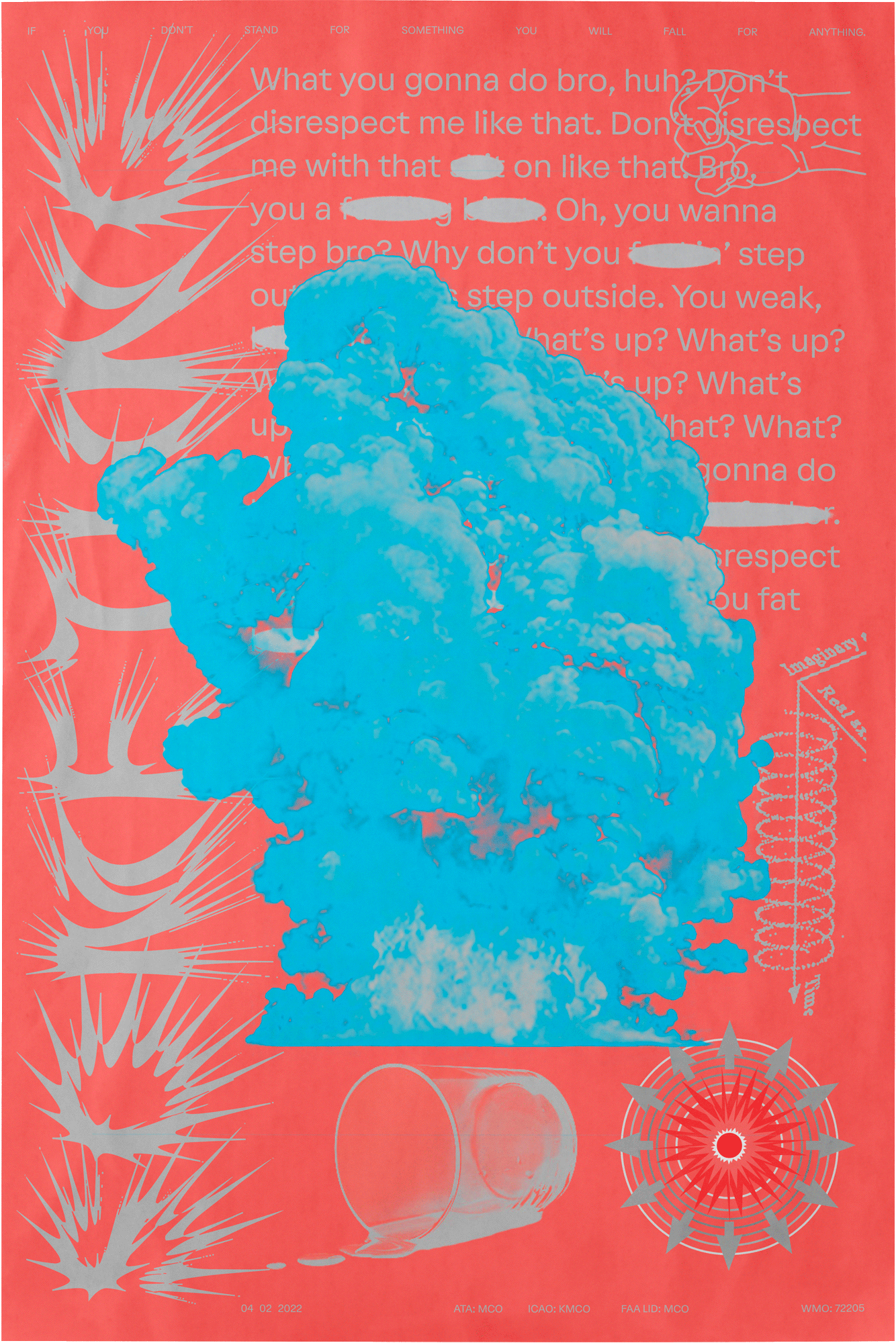 Two posters studying relationships to force, through visual repetitions of active and passive states. A latex cast fist punches through one poster and into another.